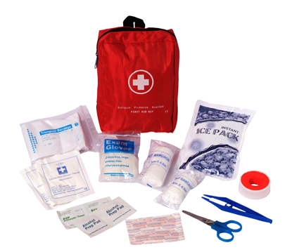 Botiquín con equipamiento de artículos de primeros auxilios.